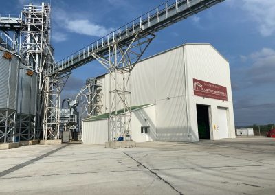 Ansamblul cuprinde 6 silozuri de stocare cereale, fiecare cu un volum de 2.513 mc, rezultând un volum total de 15.078 mc. Proiectul include, de asemenea, o hală pentru recepția cerealelor și o hală uscător, necesare desfășurării complete a fluxului tehnologic.